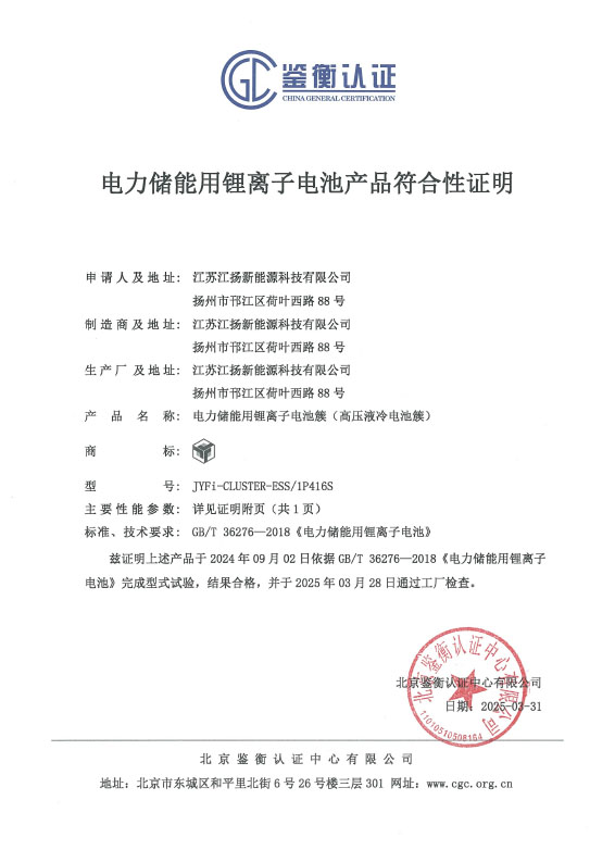 电力储能用锂离子电池产品符合性证明