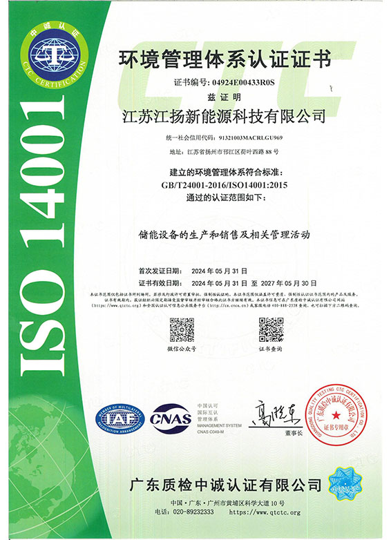 环境管理体系认证证书