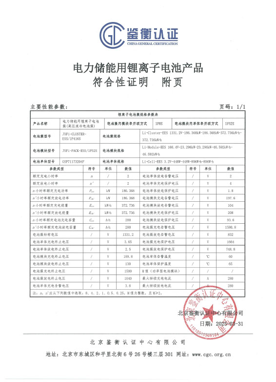 Certificate of conformity of lithium-ion battery products for electric energy storage